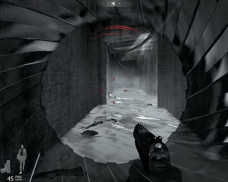 玩家若是受傷,畫面會呈現黑白,更嚴重還會出現 007 電影的招牌螺旋畫面,不過稍微休息一下即可快速恢復體力,玩家可以繼續衝鋒陷陣完成每一項任務。