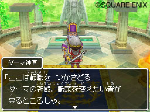 主角的職業同樣也可以依照玩家喜好來自由變換,只要到熟悉的達瑪神殿請求神官就可以進行轉職。目前已知的職業包括戰士、魔法師、僧侶、武鬥家與盜賊,每種職業所能學習的特技與魔法各有不同,玩家可以透過不斷轉職鍛鍊的方式來強化主角的能力。