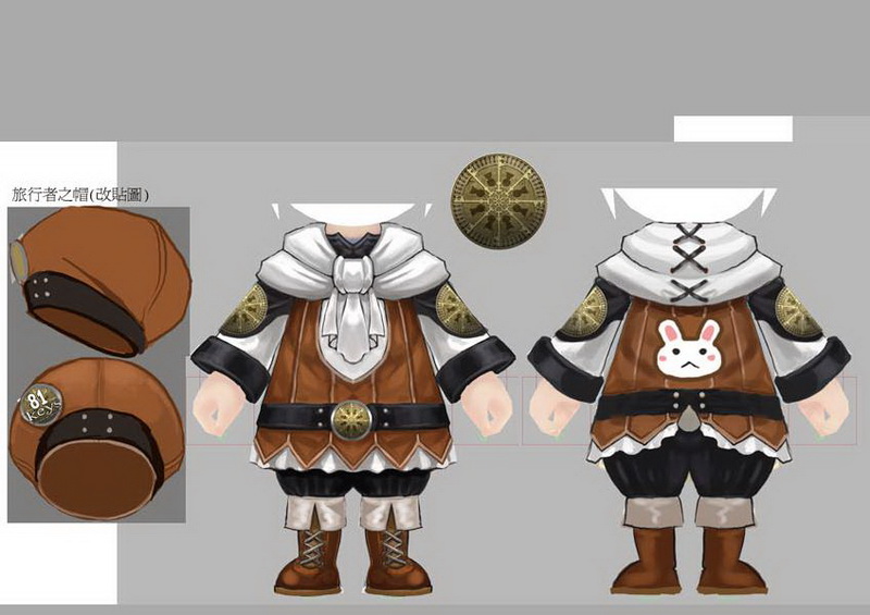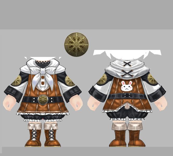 露露安塔的 CB 專屬紀念服飾,一反他們向來穿著布衣短袍的風格,而是以草原游牧民族風情為設計主軸。露露安塔男性穿著有俐落收邊的民族風短袍,配上領巾結裝飾,及俐落長褲、長靴(其實是短褲、短靴……),讓人感覺穿著這套服裝的露露安塔族人將可以隨時都秀上一手敏捷的身手;露露安塔的男女性身材差不多,所以在服飾上並沒有太大的區分。而在俐落剪裁風的上衣背後,還繡有超可愛的噘嘴兔圖案,將露露安塔可愛天真的個性表現無遺。