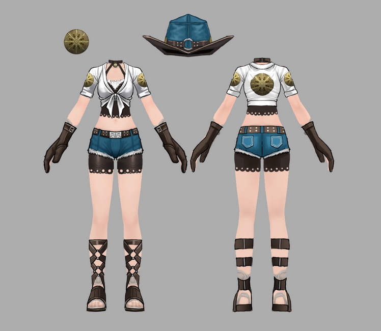 人類的 CB 專屬紀念服飾,以輕熟感的白色襯衫搭,搭配上萬年不敗單寧褲。人類男性以白襯衫搭配單寧長褲,再套上皮革背心及腰帶配件,展現一身俐落感的帥氣身形;人類女性則以白色短版襯衫搭配上超迷你單寧短褲,性感蕾絲小可愛及內搭褲更是展現人類的青春活力。