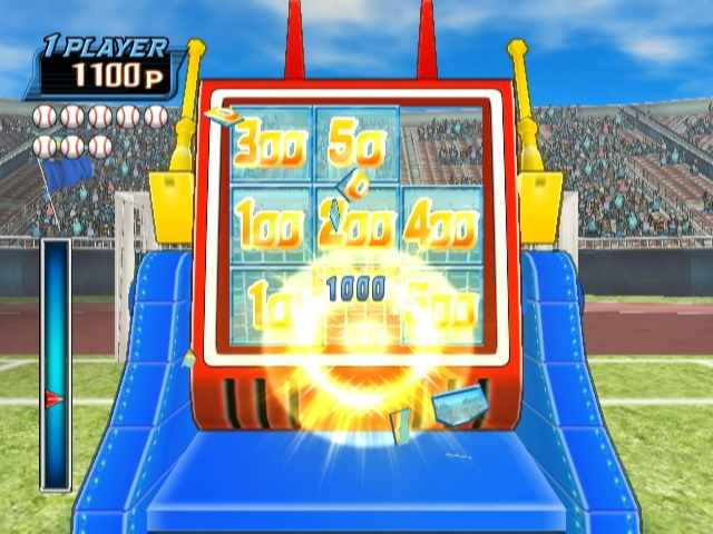 逆轉超人的專屬小遊戲是以 Wii 遙控器充當球棒,將球打擊出去擊中九宮格計分板得分