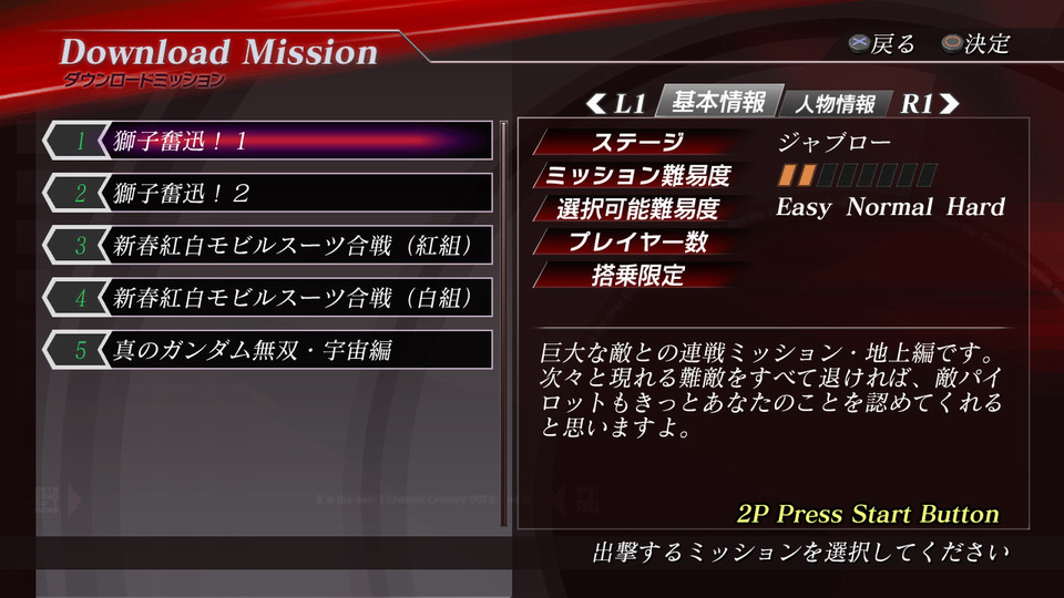鋼彈無雙 2(ガンダム無双2)》首波下載追加劇本的內容與畫面,供玩家參考。