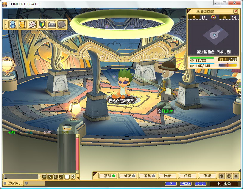 二代介面和一代相比,有種非常熟悉的感覺,主要的介面有「聊天視窗」,功能列則略同前代依序是:狀態、好友、道具、技能、任務、系統。