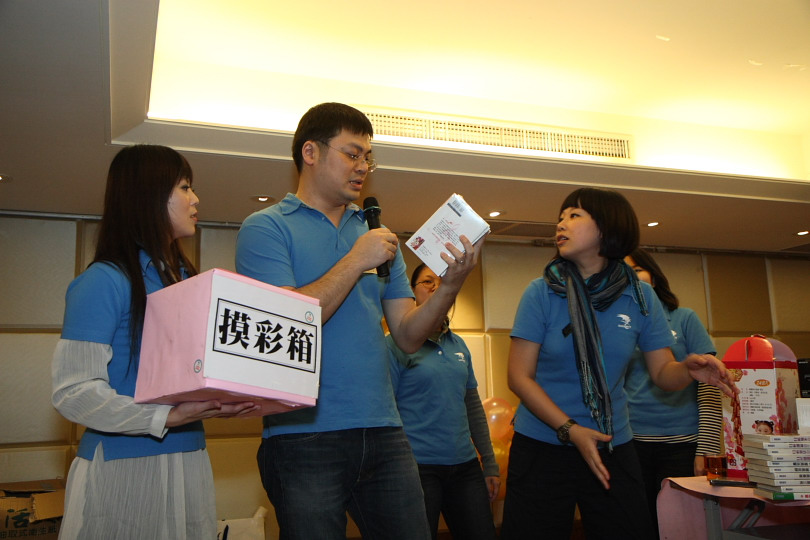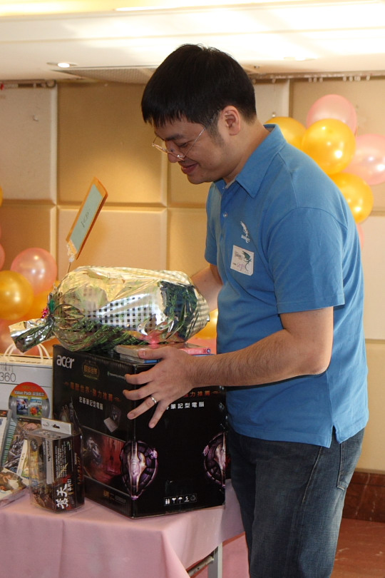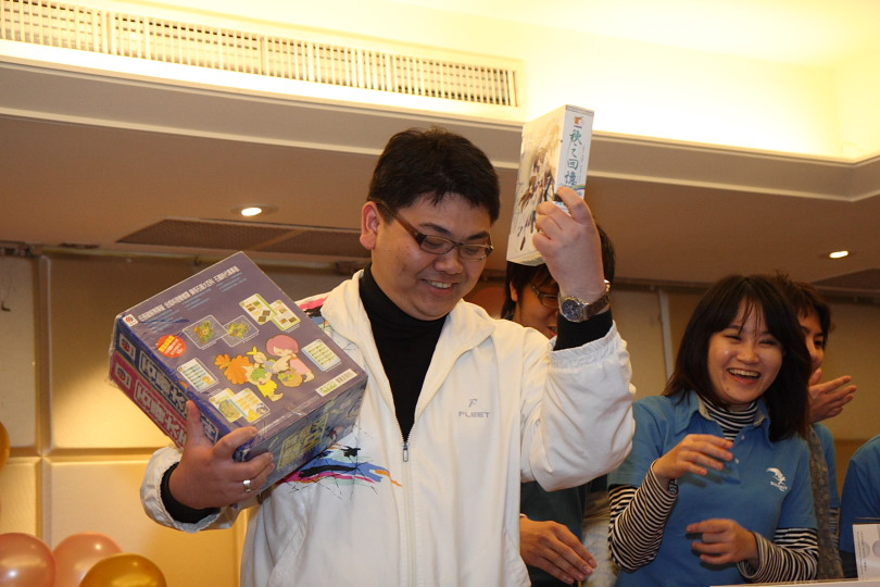 王家的紋章》。接著是一份以海苔禮盒包裝的板主捐贈獎項登場,拆封後現場歡聲雷動爆笑不斷,得獎者的表情也是五味雜陳,還擺出了經典的「orz」姿勢,因為裡頭正是每次板聚必登場的傳奇地雷獎項「石器大百科」。
