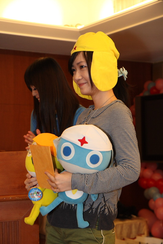 活動開場獎項是由熱心板主所捐贈,得獎的是名美麗秀氣的女板主,不但獲得 KURURU 與 DORORO 的可愛玩偶,並當場朗誦來自捐贈板主的賀文與戴上 KERORO 軍曹帽,少了以往《三太子》保平安安全帽的爆笑場面,不過卻多了幾分溫馨與可愛。