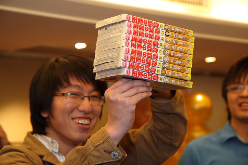 緊接著進行的是應景的福袋抽獎。這次的福袋內容各有特色,不再像以往地雷區那般把板主炸得人仰馬翻。以往最常見的線上遊戲產包地雷消失殆盡,取而代之的是豐富的書籍,包含各式攻略本、畫集、輕小說與漫畫等,其中有“每本都是第 1 集”的試閱贈法,還有成套 45 本(未完)的經典巨作《