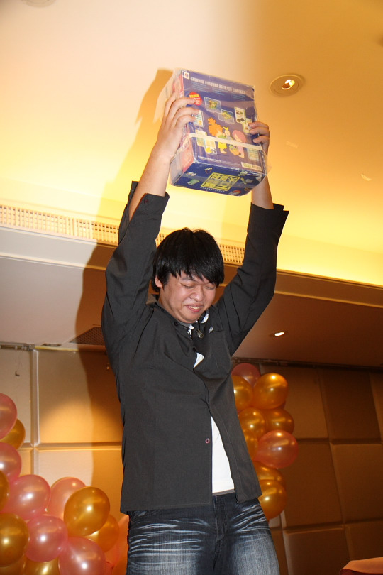 活動進行到尾聲,進入壓軸的主機大獎。這次的獎項不只是遊樂器主機,還出現筆記型電腦,不過 sega 意有所指的表示「看到的這個不一定就是那個」。果然在筆電包裝盒中再度出現「石器大百科」,引來一陣哄堂大爆笑。不過包裝中同時附帶了動畫 DVD、畫冊與遊戲軟體等安慰獎,稍稍減弱了爆炸威力,可說是附帶地雷的另類福袋。