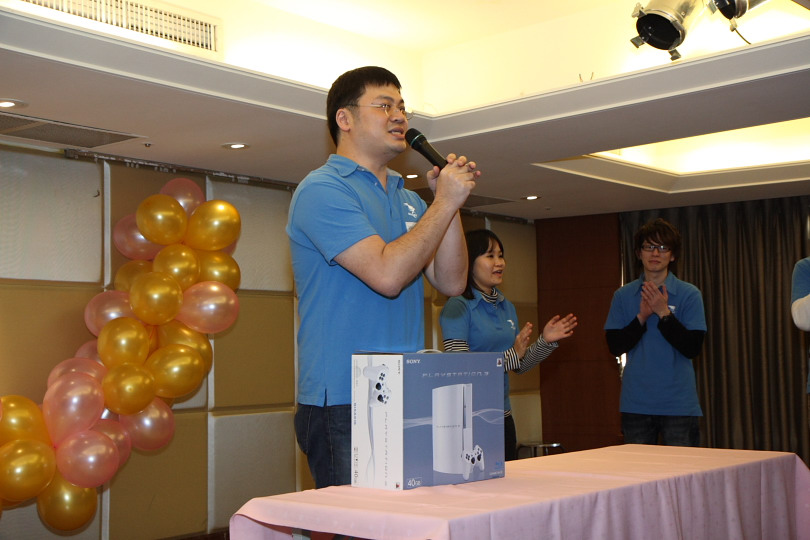 最後來到 sega 最愛的經典猜拳勝負,抽選 3 名板主上來以一把通殺的猜拳勝負的方式來決定壓軸大獎 PS3 落誰家。而且這次首度採用新的不回頭背對猜拳方式,板主出拳後的那一瞬間自己也不知道勝負為何,內心忐忑的程度不言可喻。幸運的《風之少年》哈啦板副板主 kqis2000 在第 1 回合就以石頭通殺兩名競爭對手,順利抱回 PS3 大獎。