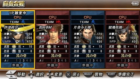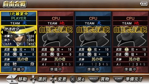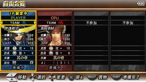 ◆ 自選武將大亂鬥的「自由會戰模式」