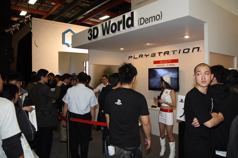 現場還特別設置了技術性展示的「3D World」展區,以 SONY 研發中的 3D 立體影像液晶電視搭配 PS3 來展示《
