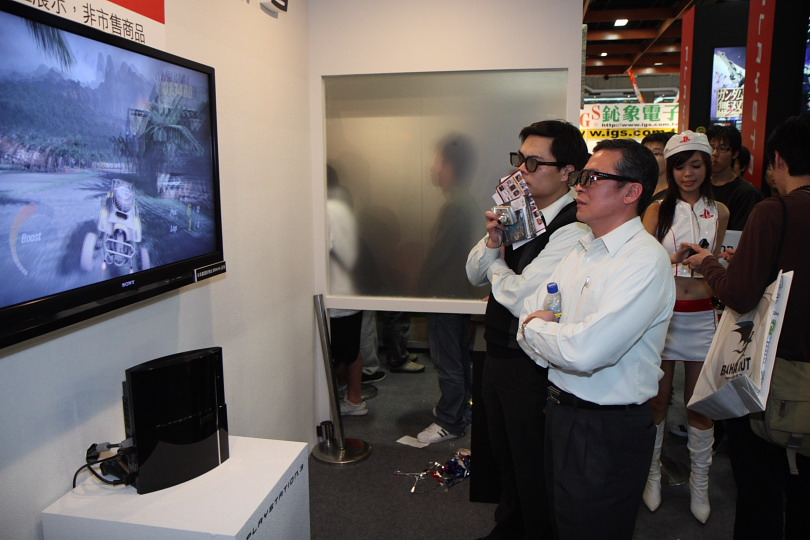 磁浮飛車 HD》等多款配合 3D 立體顯示加以修改的特別版遊戲。參觀者只要戴上特製偏光眼鏡,就可以欣賞到真正具備遠近立體感的逼真 3D 立體影像遊戲畫面,未來的發展相當值得期待。