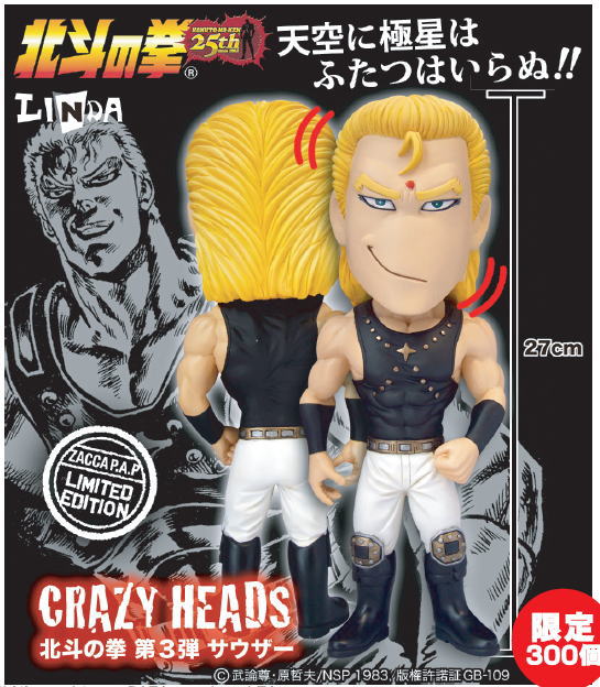 「CRAZY HEADS 北斗の拳 サウザー ZACCA PAP版」 發售日期:2 月下旬 製作單位:ザッカ ピー・エイ・ピー 定 價:3990 元(日幣) |