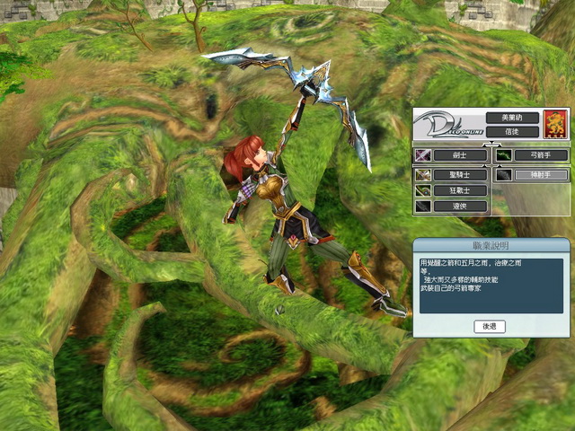 在創立角色的介面下,我們可以直接看到未來所能轉職而成的各種職業。梅爾納在一轉時將能轉職成「御劍士」或「弓箭手」,之後更能進一步的轉職成「聖鬥士」、「暗殺者」、「狂戰士」與「神射手」等職業,從預覽中還能看到每個職業的裝備特色與職業解說喔!
