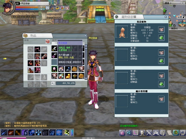 寵物的升級除了一起打怪外,在野外會獲得許多「寵物經驗書」,只要放進想升級的寵物包包內使用,就可以直接增加寵物的經驗。寵物體力用完沒法攻擊?快把剛打到的寵物活力之水餵給牠吃吧。