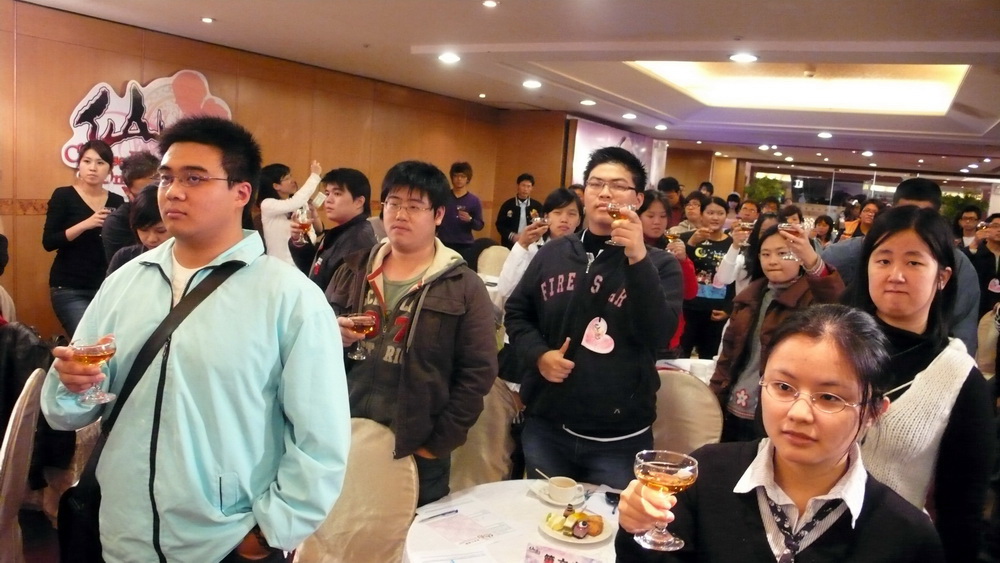 | 現場玩家與研發團隊一起舉杯慶祝菁英測試圓滿 |
