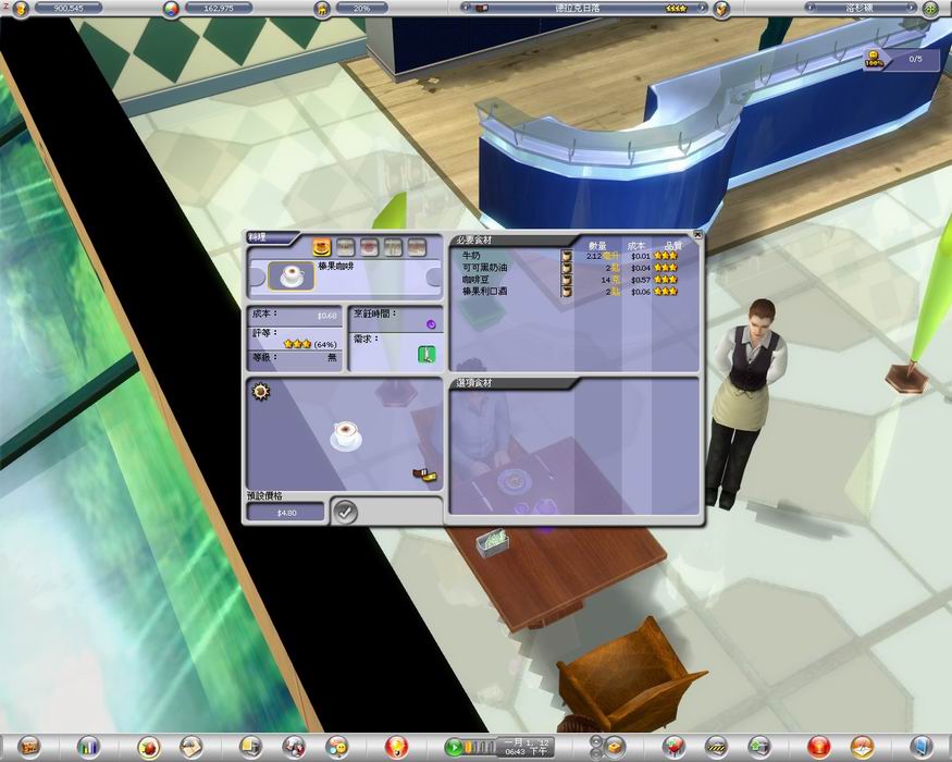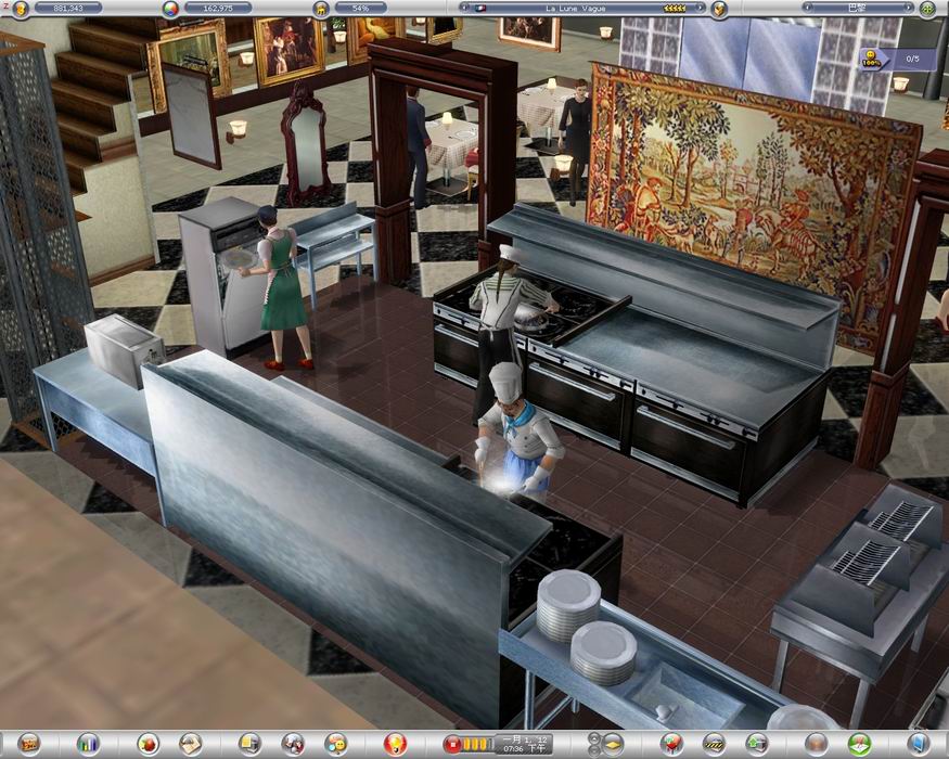 服務人員方面,在執行工作的動作表現上也相當可圈可點,像是廚師會依照菜單上,不同的菜色作法運用到不同的器材,玩家真的可以看到廚師揉麵糰、打開烤爐、攪拌鍋子……等等細膩的烹飪作業。服務生的服裝也有多種選擇,女性有像空姐的氣質套裝,男性則有西裝筆挺的高帥服裝,玩家可以盡情選擇自己喜歡的服裝來為客人服務,只是不知道穿著短裙的女服務生是不是會吸引更多男性顧客?