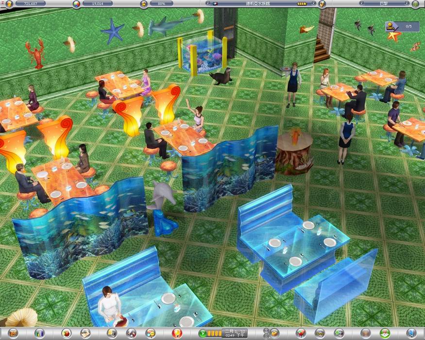遊戲裡包含了義、法、美、德式餐廳,裝潢物件相當豐富與細緻,像是法式餐廳的噴水池、義式餐廳牆壁上的壁畫、壁爐,玩家可以擺設出一個高質感的餐廳來吸引上流顧客,增加顧客的舒適度。裝飾品的材質和貼圖也很真實,還有相當多種類的主題餐廳供玩家開設,絕對能夠滿足打造夢幻餐廳的願望。