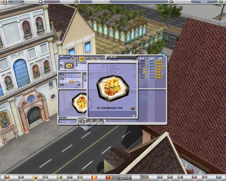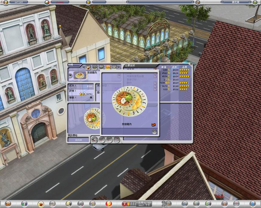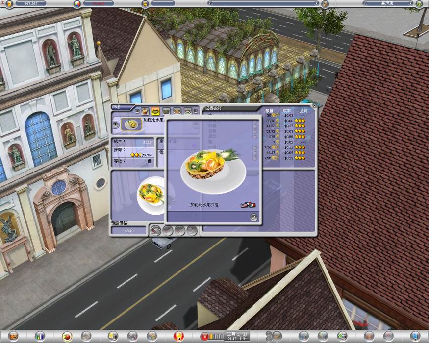 建議玩家多去參加地方或是世界級的烹飪大賽,來提升自己的聲望與料理技巧,當然,來參加比賽的廚師都不是省油的燈,選定好要比賽用的料理後,玩家會看到三組廚師人馬會在現場就做起料理,這種緊張的氣氛就像是在看料理東西軍,另外玩家也可以在比賽中玩點小遊戲,玩得好的話,就會增加該廚師的烹飪能力,搞不好還會因為玩家的誤打誤撞而獲得冠軍呢!