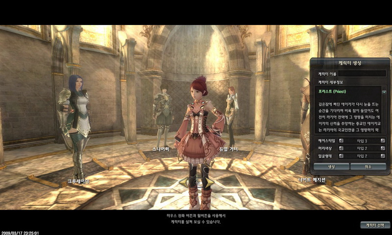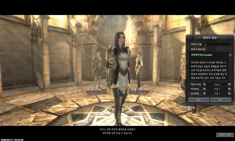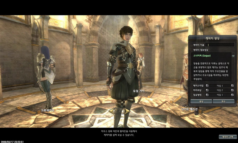 狙擊手、敏捷迅速令人捉模不定的突擊者、喚醒潛在黑暗世界能力的黑魔士、發揮神聖教義的聖徒者。在選擇角色時,可以調整角色的髮型、髮色、臉部特徵,然後輸入名字、按下確認後,即可進入遊戲。