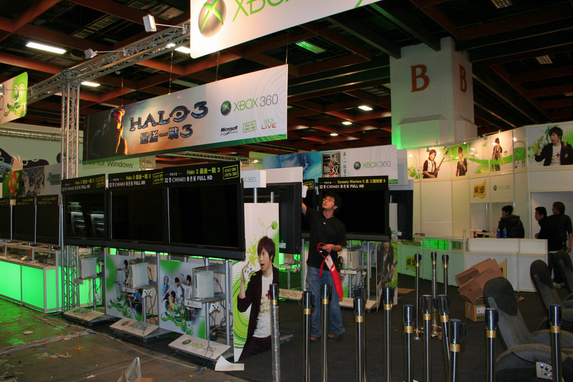 | 大螢幕與豪華試玩機台只是基本 | 從高層樓閣眺望微軟展出攤位 |