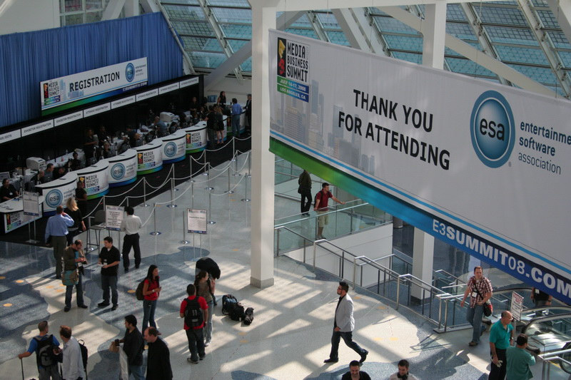 延續改制後模式的 2008 年 E3 則是回到了老地方的 LACC,不過依舊維持精簡化的規模,主辦單位只規劃了中央大廳進行集中展出,各廠商分配到的攤位面積只比 2007 年的機棚稍大些,因此大多數廠商還是必須自行租用 LACC 內部的眾多會議室獨立展出。