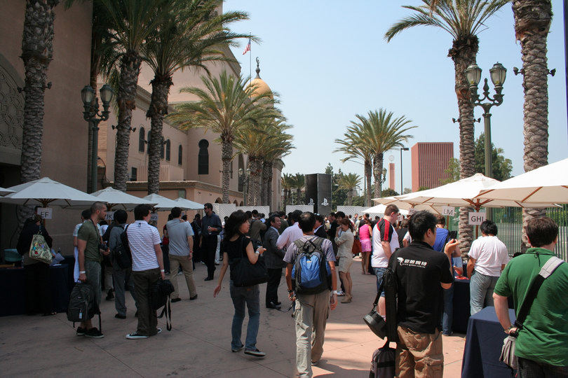 在好萊塢擁有電影製片廠的新力,通常會選擇在自家新力影城(Sony Pictures Studios)攝影棚舉辦展前發表會;任天堂則是習慣租用奧斯卡金像獎頒獎典禮所使用的柯達劇院(Kodak Theatre)舉辦展前發表會;微軟則沒有固定的選擇,這幾年曾經在好萊塢中國戲院(Chinese Theater)與聖殿禮堂(Shrine Auditorium)等地舉辦過展前發表會。