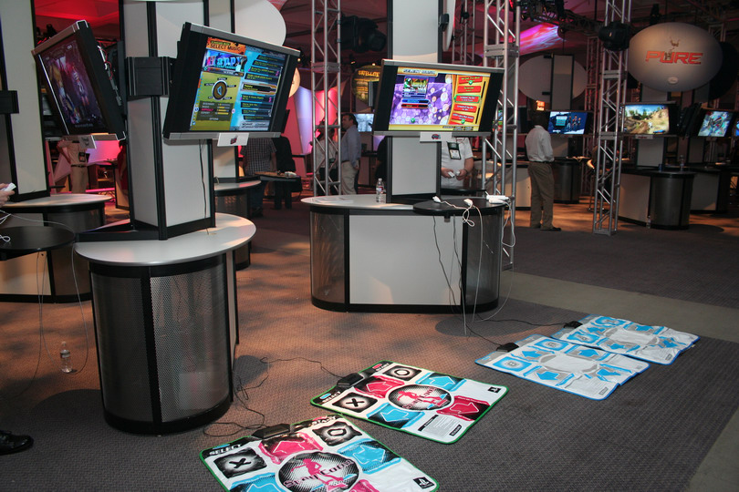 | 機棚內部的展出實況 | 不用排隊就可以玩到最新發表的《Wii Fit》 |