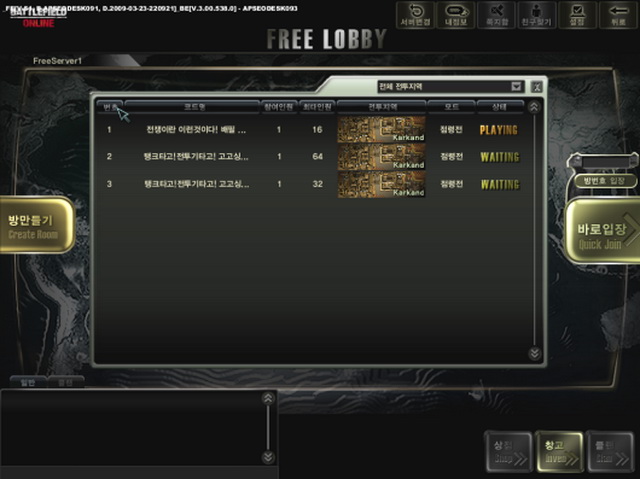 遊戲房間時,可以運用類似電腦檔案瀏覽方式,選擇你想要的條件依序排列,快速找到適合個人的對戰房間,也可以區分出開戰中或等待中的房間等。