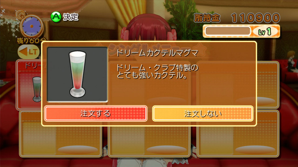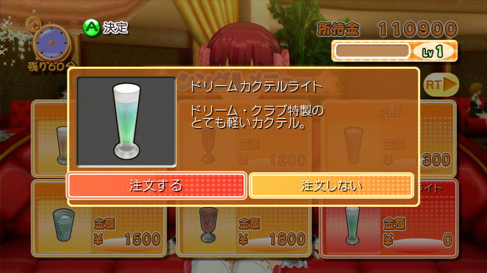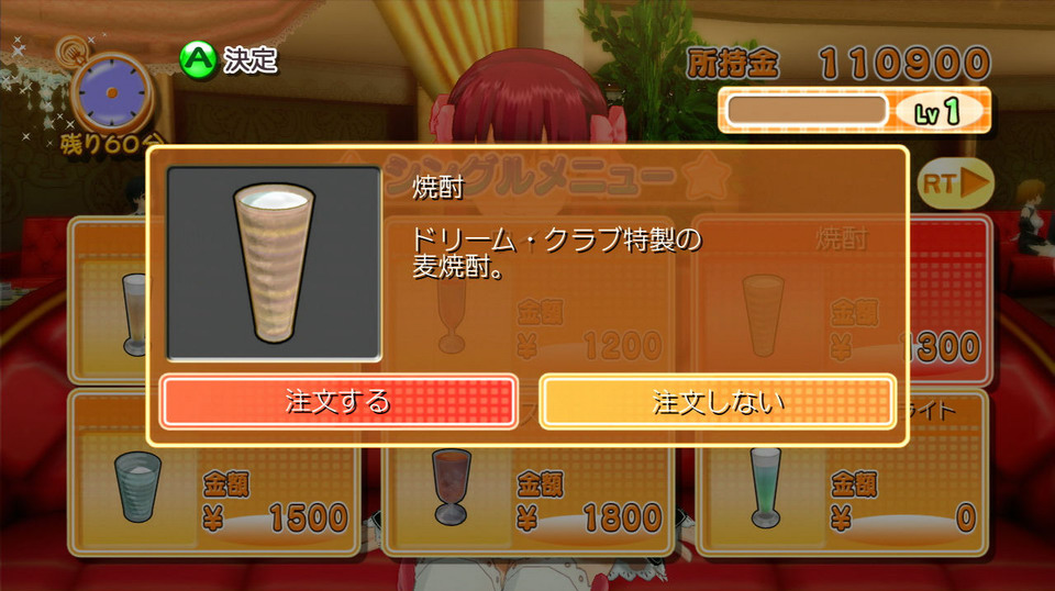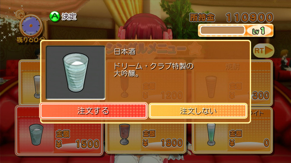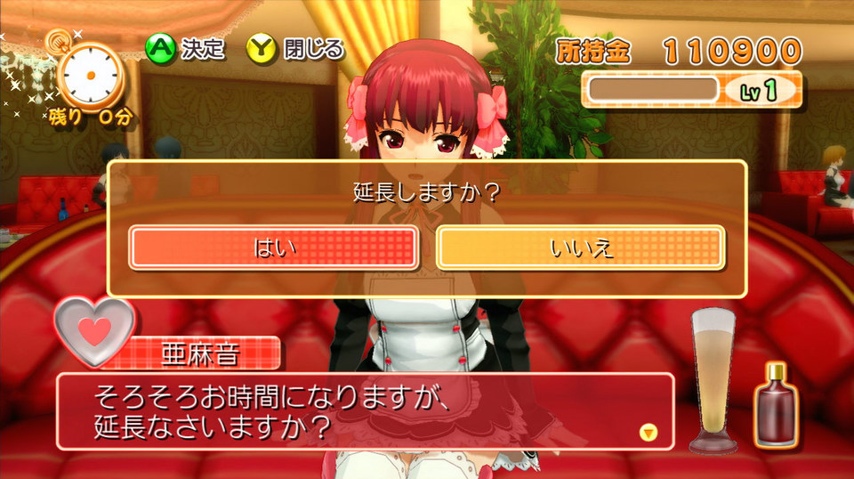 每次接待的行程是 1 個小時,玩家可以花費額外金錢延長最多 40 分鐘,不過待的時間越長,對飲酒力的考驗也越嚴苛,要延長之前最好自行斟酌飲酒力等級是否足夠。