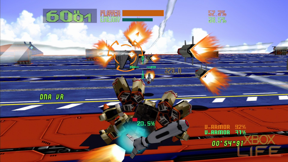 當年的《VO-OT》迄今已有10年的歷史,對於這些年來技術演進帶來的聲光效果落差,這次的Arcade版除了支援寬螢幕以及全面720p化,並支援Xbox LIVE連線對戰的功能。在遊戲原本的內容方面,原本的11+3架Virtuaroid(最初版本的11架加上5.66新增的3架)完全保留,達成條件後可選擇隱藏機體Ajim,機體塗裝的功能同樣保留之外,連大型機台讀取塗裝資料時的Dreamcast記憶卡圖示也原封不動地移植了過來(戰機身後背著的也是Dreamcast),內容上可是原汁原味。