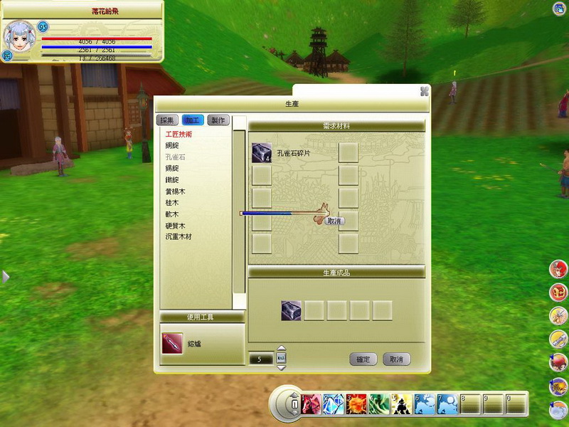 余憲明指出,遊戲生活技能主要分為採集與加工技能,採集技能包括「釣魚」、「採草」、「伐木」、「挖礦」「剝皮」五個基本採集技能,玩家可蒐集獲得豐富的物資,材料將有好壞之分,也影響了取得的難度;學會基本的採集技能後,進階加工技能包括「工匠技術」、「製布技術」、「烹煮技術」,這些技能製作則有等級,而玩家要透過取得配方來學習加工技能。每個職業所有生活技能都可以練滿。