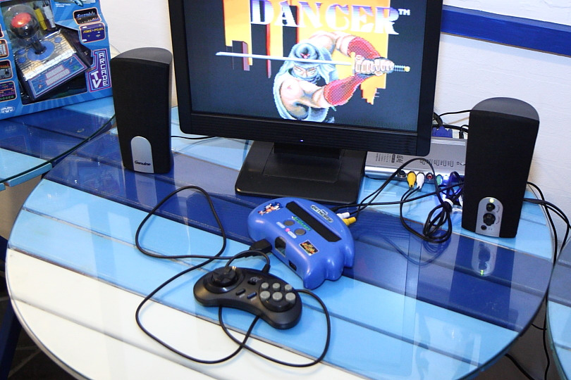 「音速雙打機(FB8300)」是款相容 SEGA MD 的電視遊戲機,採用索尼克的藍色刺蝟造型,支援無線控制器(選購),只要插上電源接上電視就可以遊玩包括《影舞者》、《