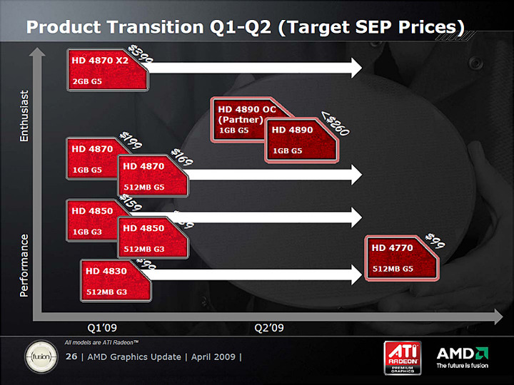 Zvika Greenstein 表示 Radeon HD 4830 產品線將由 Radeon HD 4770 承接,Radeon HD 4830 將逐步淡出市場,只在中國等部分地區持續出貨。至於頂級產品線部分,目前尚無計畫推出更高階的 Radeon HD 4890 X2 ,仍維持原本的 Radeon HD 4870 X2。