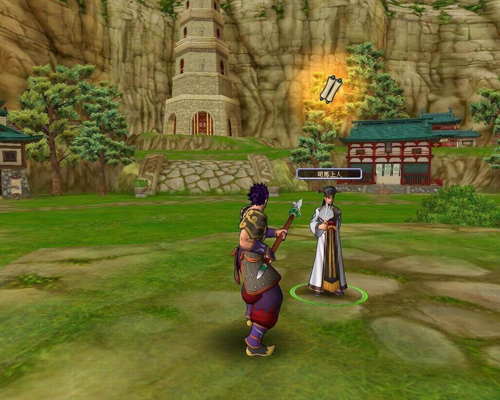 風林火山 Online》對於新手有非常體貼的設計,會自動導引玩家前往正確的 NPC 或者地點,完全不用擔心迷路。所以,一進入遊戲後系統會自動導引玩家前往 NPC「司馬上人」所在處,與他對話展開進入這奇幻世界的第一項任務──混沌結界。