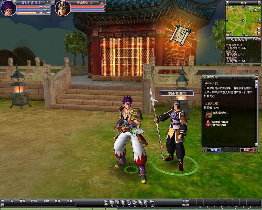當然,接下來就是一連串的任務,除了可以獲得經驗值與金錢外,還可以從 NPC 那獲到不少的補品與裝備,光靠進行任務就能快速升級。