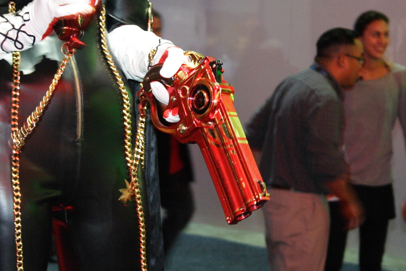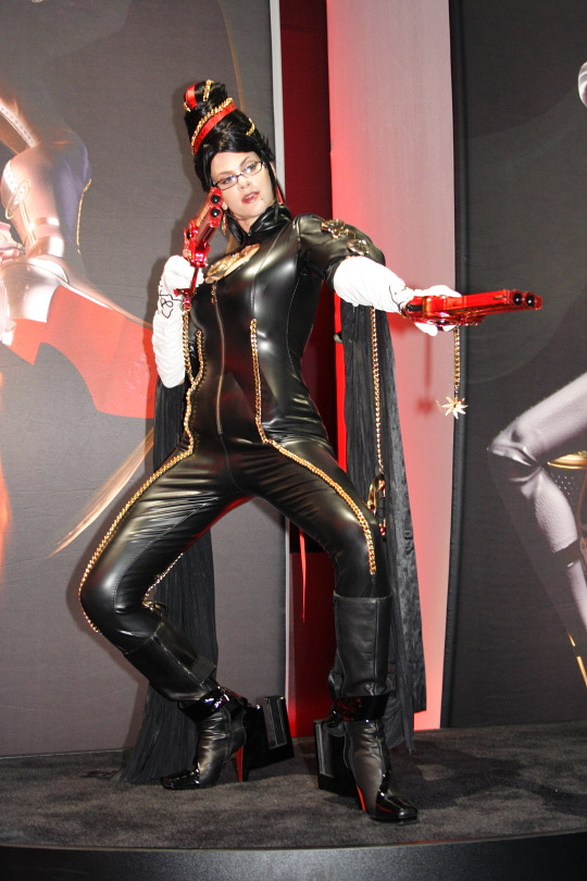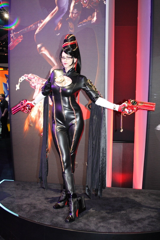 現場還特別請到模特兒以蓓優妮塔的火辣裝扮招攬人氣,由於從服飾、配件、身材、神韻乃至於姿勢都非常逼真,因此每次登場必定吸引大批參觀者拍照或合影留念,可說是本次 E3 展中人氣最高的遊戲裝扮表演者,連索尼克與瑪利歐都要甘拜下風。
