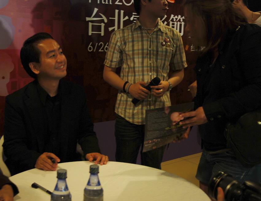 為觀眾簽名中的曾利文彥導演 曾利文彥導演開心地與觀眾聊天