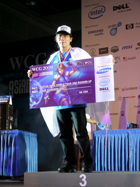 WCG 世界電玩大賽亞洲邀請賽,我國代表隊選手陳宜杰下午在《吉他英雄:世界巡迴》項目擊敗賽前他最在意的韓國對手 Han Kyuhwan,奪得季軍。