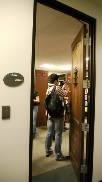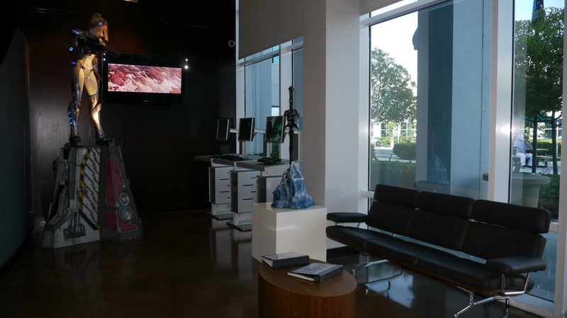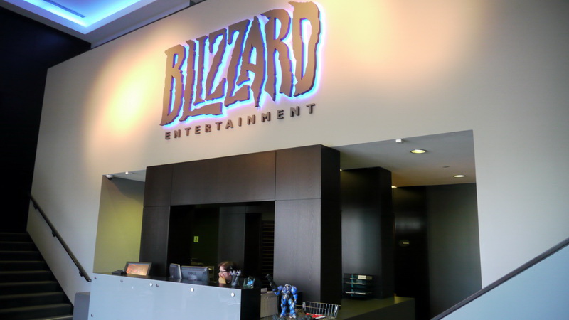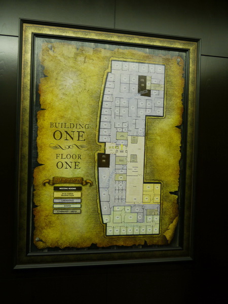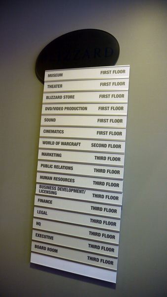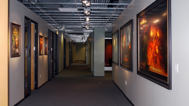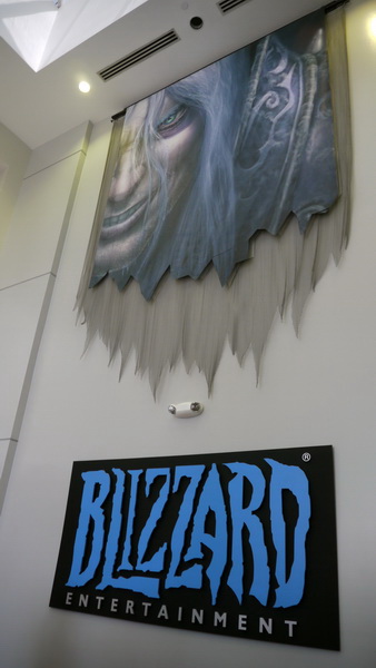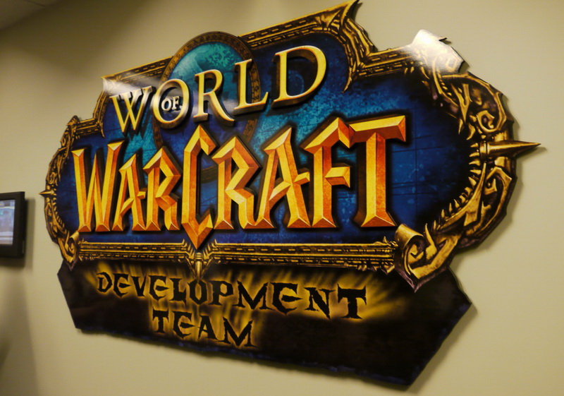 | 一進去就看到魔獸世界研發團隊字樣 | 研發工作室走道 |