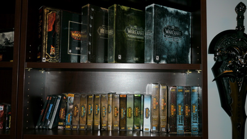 | 櫃子上有來自台灣的魔獸世界產品包 |