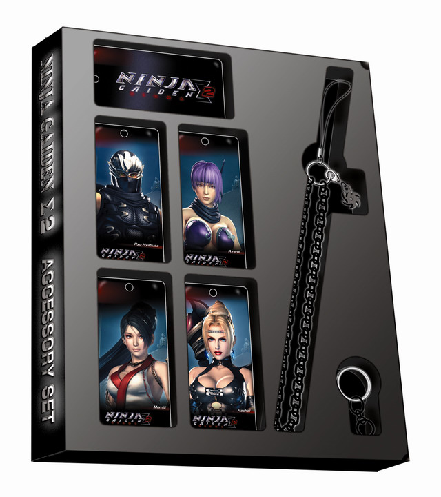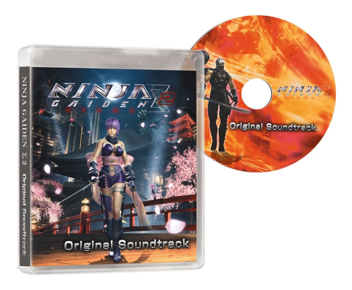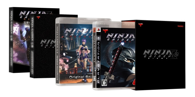 忍者外傳 Σ2 超值盒》,內含遊戲光碟、原聲配樂 CD、原創周邊組與特製盒套,可與預約特典的新手指引畫冊一同收納。