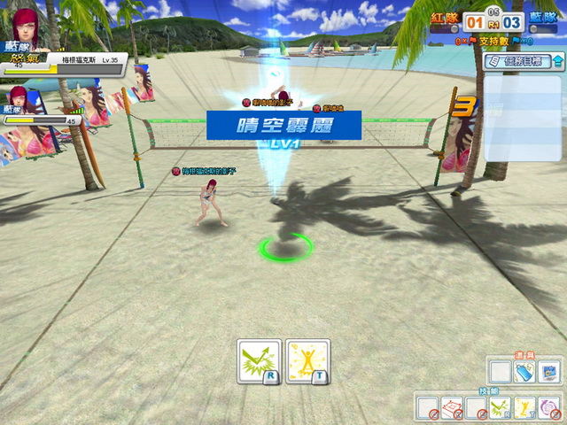 遊戲中除了呈現沙灘排球正規賽強烈刺激的對抗及多樣的戰術技巧外,還可感受超越現實沙灘排球競技的華麗刺激技能。例如玩家可使出「沙風暴」技能後,排球場地將在一段時間內刮起沙風暴,敵方玩家將會看到被沙風暴包圍看不到所有另一方的玩家行動,體驗與現實截然不同的虛擬遊戲樂趣。