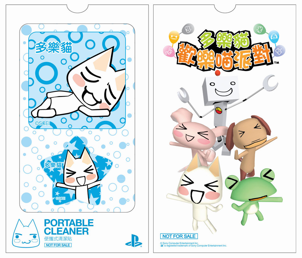 多樂貓歡樂喵派對》中英文合版預定 8 月 13 日推出,即日起只要到 PlayStation 加盟通路預約遊戲,就有機會獲得多樂貓造型的螢幕擦拭布作為特典贈品。