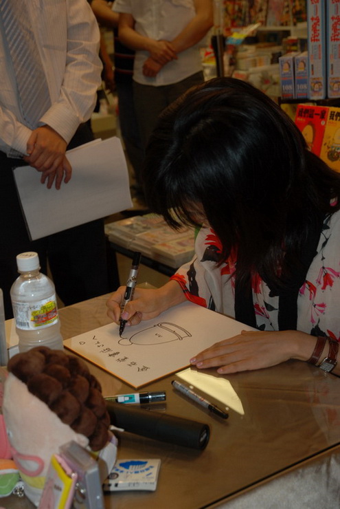 | 專心在簽名中的けらえいこ | 漫畫家けらえいこ |