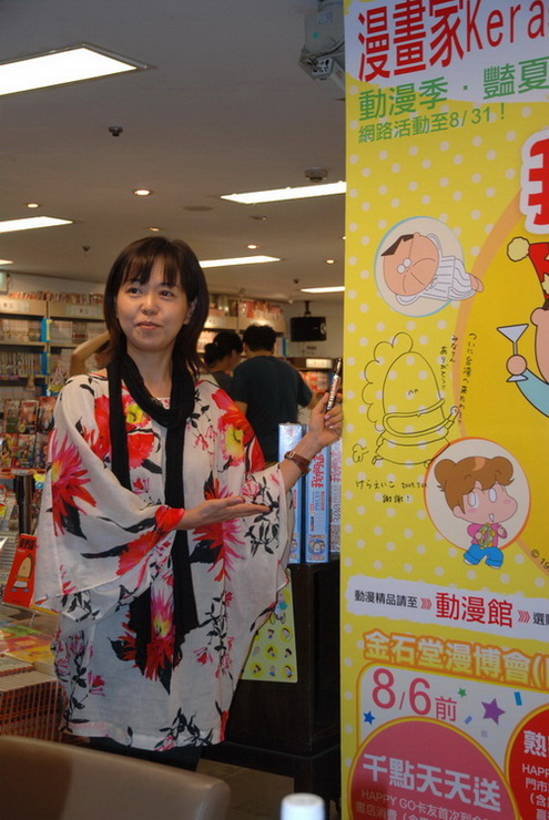 ![專心在簽名中的けらえいこ]() | ![漫畫家けらえいこ]() |