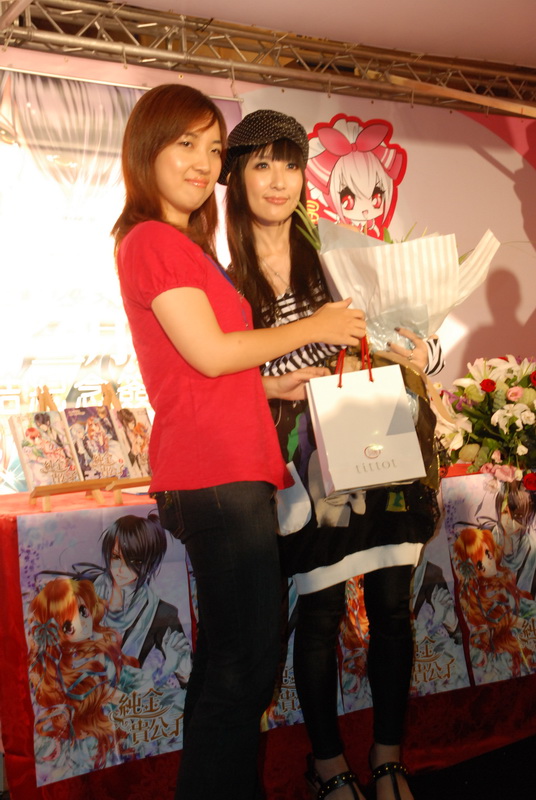 | 尖端編輯獻花給三月兔(右) | 三月兔與讀者合影 |