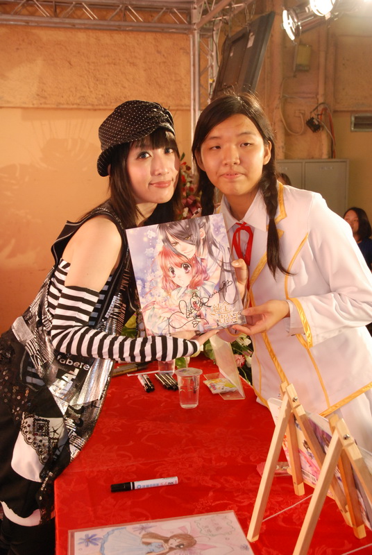 純金貴公子》之中的女主角「采螢」,作者三月兔也很開心地與這位讀者合影留念。