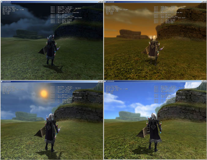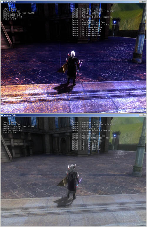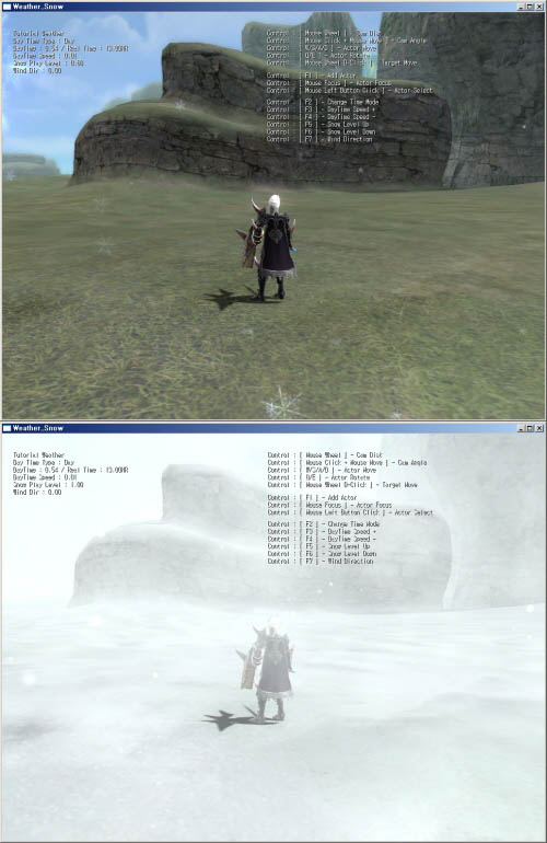 3.可以展現天氣和時間變化:相同背景下,不同的天氣遊戲裏可以展現不同的氣氛。Zerodin 引擎強化現有 MMORPG 天氣變化系統。該引擎可以在遊戲中展現下雪、積雪等,到秋天地圖還會被落葉覆蓋,在四季季節會以季節不同呈現天氣畫面。