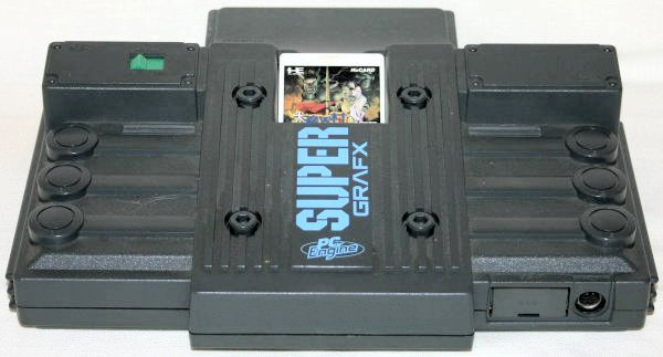 同樣是在 1989 年 12 月,PCE 的高階相容機種「PCE SuperGrafx(SG)」登場,採用以汽車引擎為概念的獨特造型設計,配備了 2 組繪圖處理晶片、2 倍的繪圖記憶體與 4 倍的主記憶體,動畫拼合數量加倍到 128 個,背景捲軸也從 1 面變成 2 面,圖形處理能力超越 SEGA MD。影音輸出部分同樣配備 AV 影音端子,採用具備連發功能的控制器。