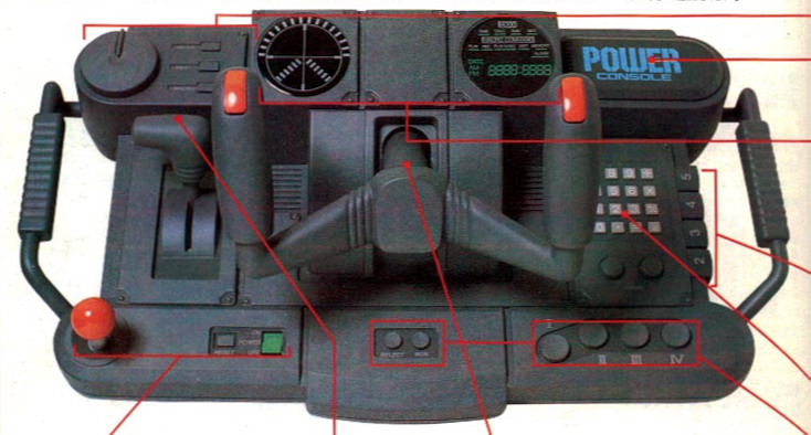 附帶一提,當年 NEC 本來還打算在 1990 年春季推出結合方向盤、大型搖桿、節流閥、旋鈕控制器、LCD 顯示面板、LED 儀錶板、計算機、巨集熱鍵、指令紀錄等劈哩啪啦一大堆功能的 PCE SG 專用超大型控制周邊「威力操控台(Power Console)」,豪華的程度絕對可以稱得上是前無古人(應該也會後無來者),預估價格為 59800 日圓。